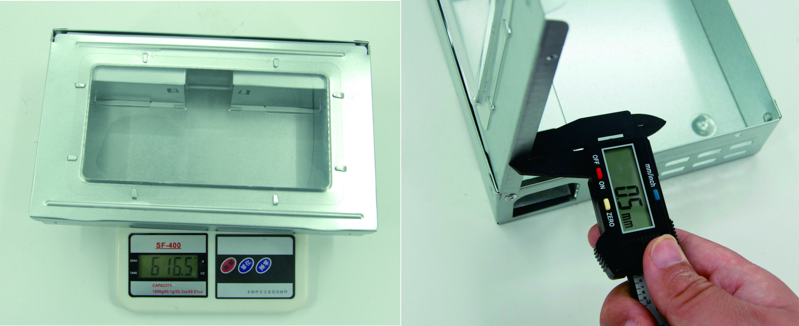 Weight is 616.5g,thickness of galvanized sheet is 0.5mm.